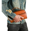 - Chất liệu da bò thật – Bền bỉ và sang trọng của clutch cầm tay