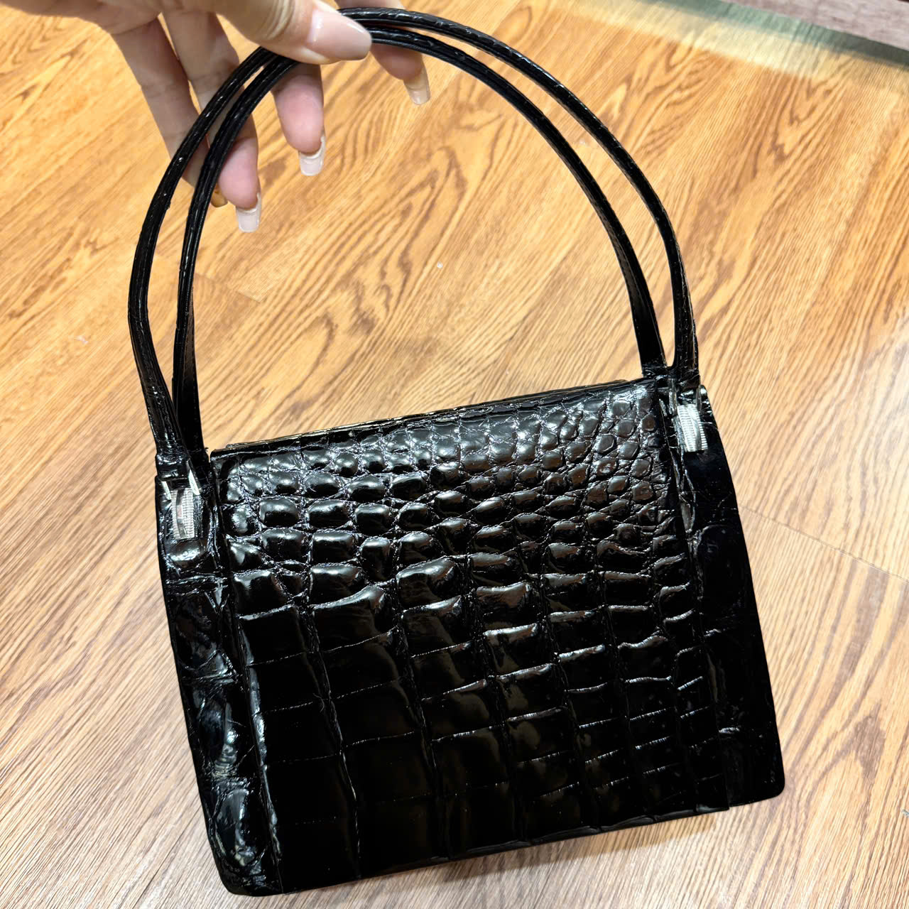 | Chất liệu | Da cá sấu thật (Xử lý bóng kính) |
