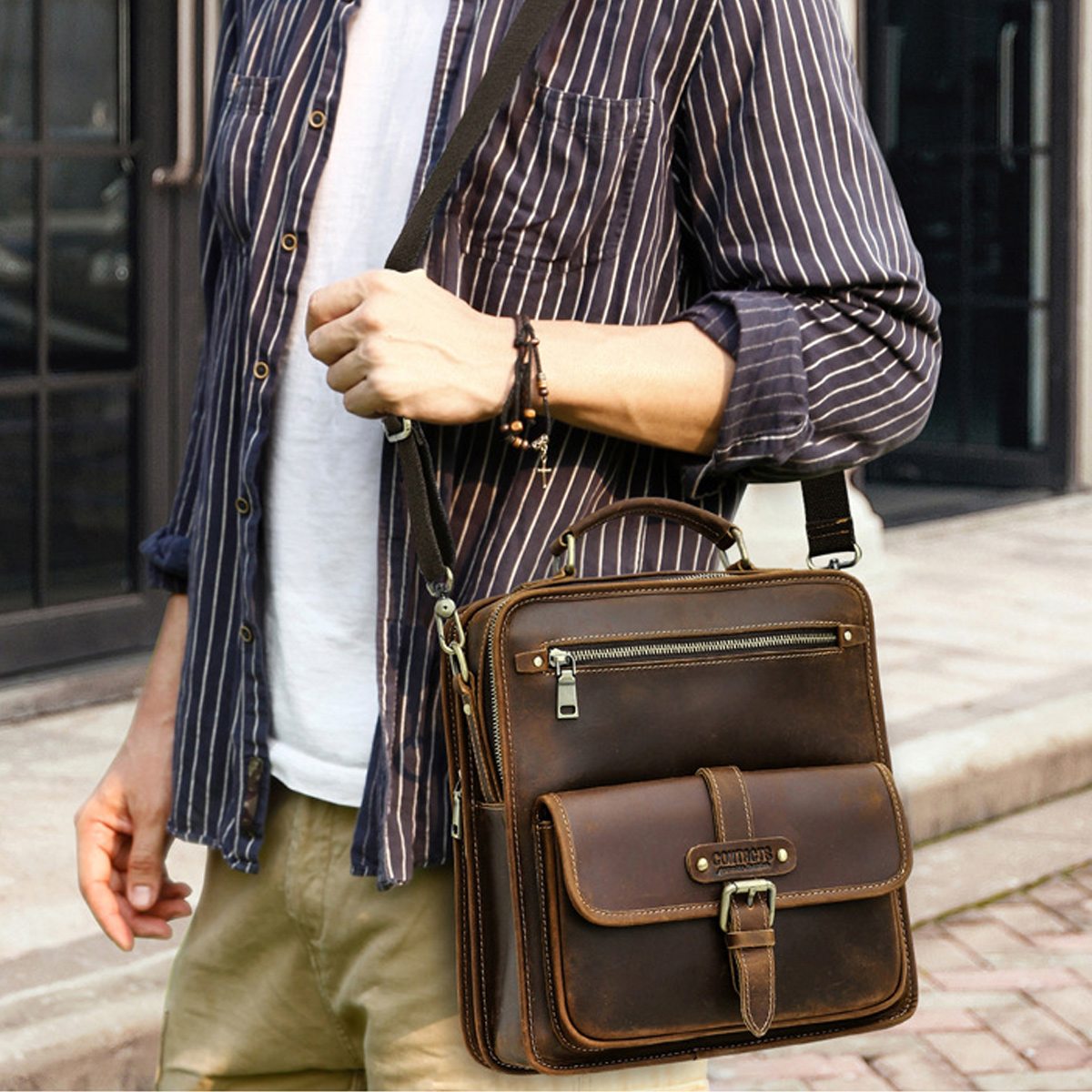 Nâng cao phong cách thời trang của bạn với túi đeo chéo da bò sáp theo chiều dọc hợp thời trang. Thiết kế tinh tế và thanh lịch này được chế tác từ da bò cao cấp, hoàn chỉnh với nhiều ngăn tiện lợi, là sự lựa chọn hoàn hảo cho những quý ông coi trọng sự hoàn hảo.